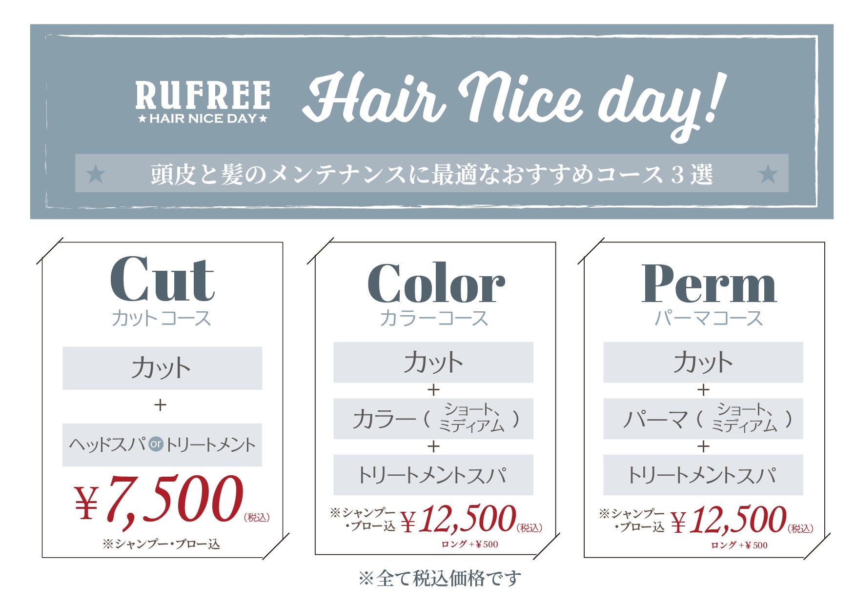 ※パーマメニュー全てにシャンプーブロー・トリートメント料金も含まれております。